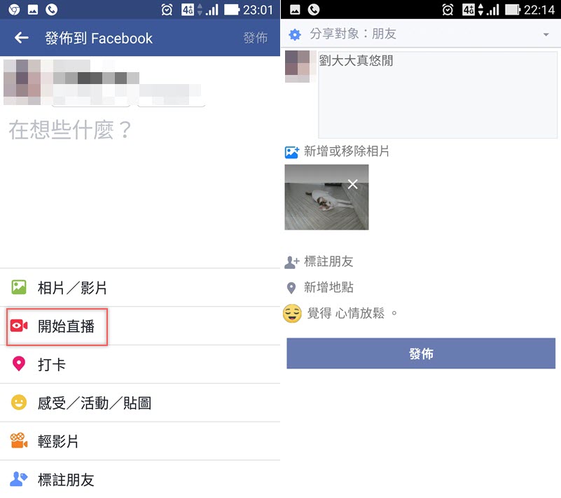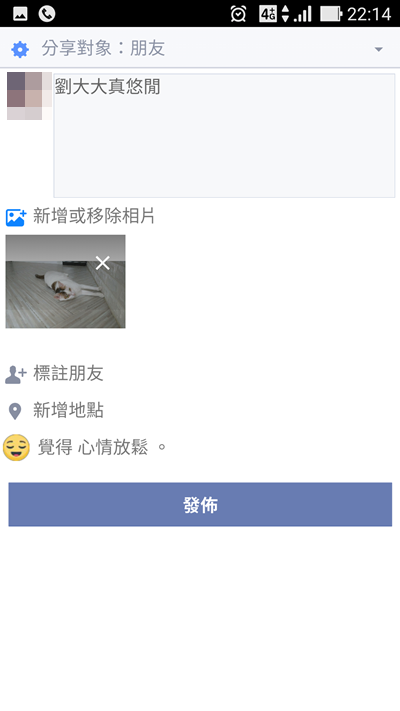 點上方發表近況更新,就切換到這裡,輸入內容、加入相片影片、感受等基本功能還是會有,那麼,到底少了什麼呢?