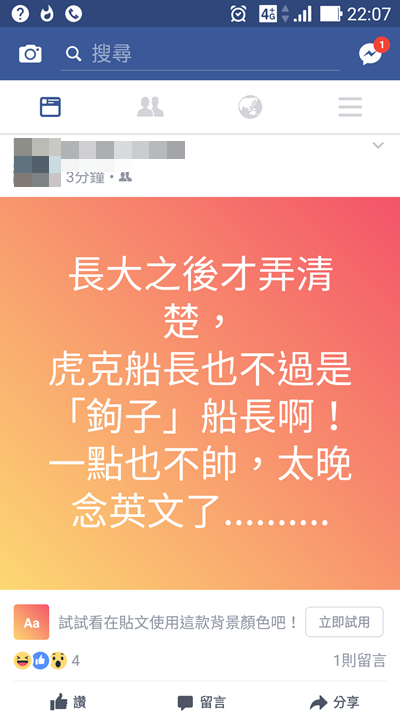 像下圖原版的發文可加入彩色背景的功能,輕量版就沒有了,只能白底黑字,文章下的留言預設也是隱藏的,只會顯示留言數目。