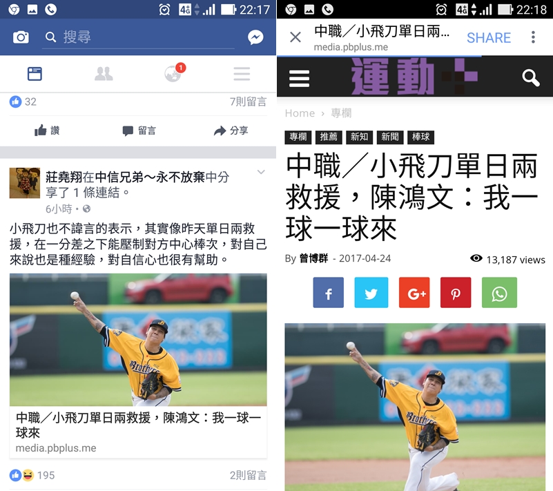 左圖一般版點圖片就會快速連結,右圖輕量版就以傳統瀏覽器的方式開啟,不能直接預覽,點連結後也要等待載入的時間。