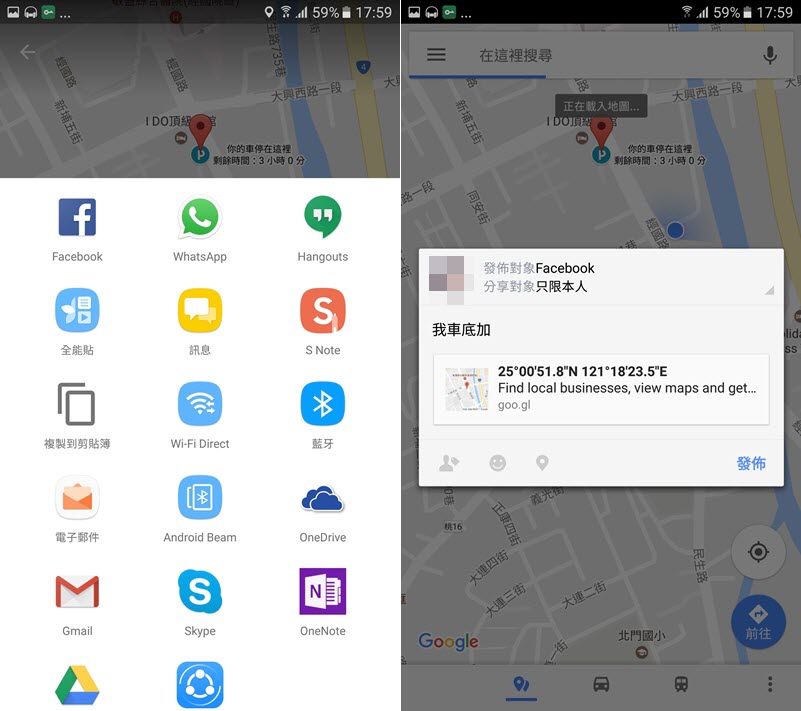建議大家一定要去更新,理論上應該 Android 和 iOS 都已經開放了,進到 Google 地圖後點定位的那個藍點,下面就會多出一個「儲存停車位」,點它就會在地圖上標好位置,並以「更新時間」代表你停了多久。
