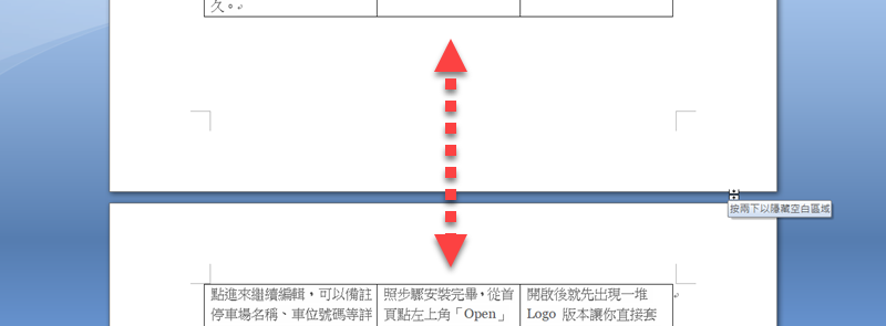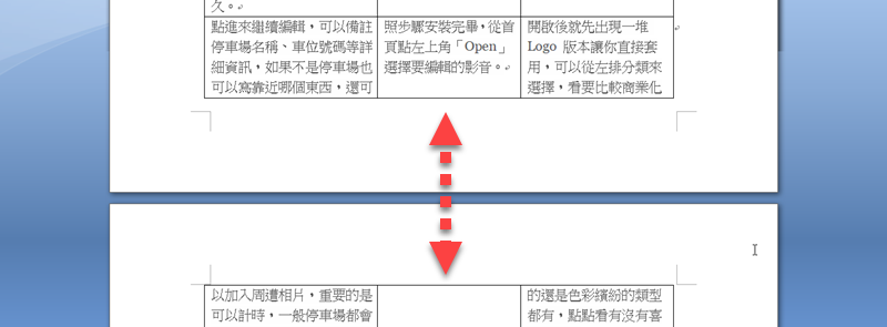 一般表格,碰到跨頁的時候就會在上下頁的表格資料間,留下一片空白,比範例大片的都有。