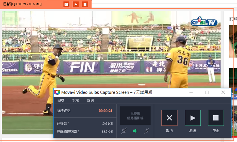 錄製螢幕的功能也不錯用,只要在主選單點進「錄製電腦螢幕」就會跳出框框,將它搬到要錄的地方,調一下尺寸,再按開始就可以錄了,非常簡單。