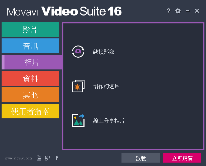 OpenShot」就蠻適合初學者使用,今天要介紹的「Movavi Video Suite」結合影片、音訊、相片等多項編輯功能,光影片的部分除了匯入相片製作,還能擷取、分割、轉檔、錄製電腦螢幕等等,內建的濾鏡、轉場模式也很豐富,繁體中文介面清晰易懂,無論是初學者或是已經有基礎的人都可以來用用看。