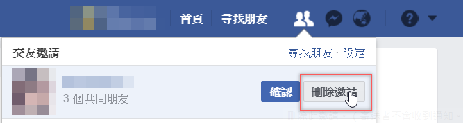 然後對方就會在右上角看到你的邀請,如果他點了「刪除邀請」。