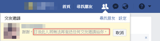封鎖方也會收到來自臉書的道歉,可見封鎖是多麼傷感情的事啊,要注意一下,如果一個帳號送出的邀請常常被拒絕並「標示為垃圾訊息」,可能會被臉書停權哦,所以還是好好溝通吧,除非遇到變態。