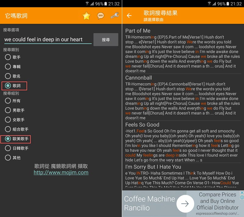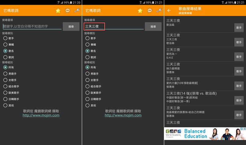有時候在路上聽到一首好聽的歌,但只聽得出部分歌詞,通常會回來上網 Google 看看,不過 Google 的資訊太多,可能還要從結果慢慢去找,其實可以下載「它嗎歌詞」這個 APP,內容取自「魔鏡歌詞網」,可以輸入歌手、歌名、專輯、歌詞來搜尋,歌手部分也可選擇男女歌手、組合歌手、歐美歌手、日韓歌手等,或者只是想回味一下喜歡的歌,也可以用這個 APP 找歌詞出來。
