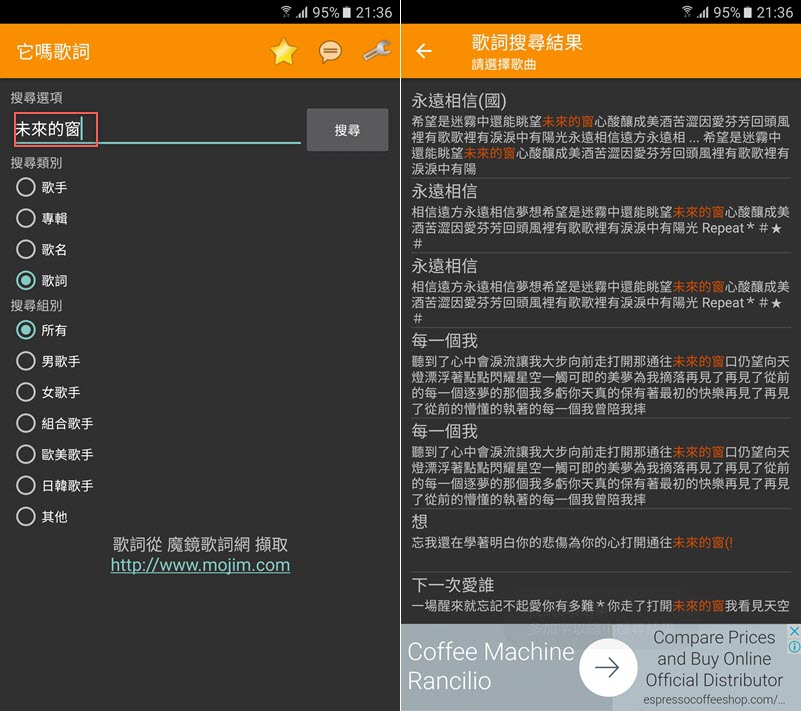 這款 APP 目前只有 Android 版,iOS 上通常都是像一些聽聲辨曲(但不一定好用),或是詞曲同步的 APP,但其實很多時候我們並不需要那麼複雜的功能,單純看歌詞就好。