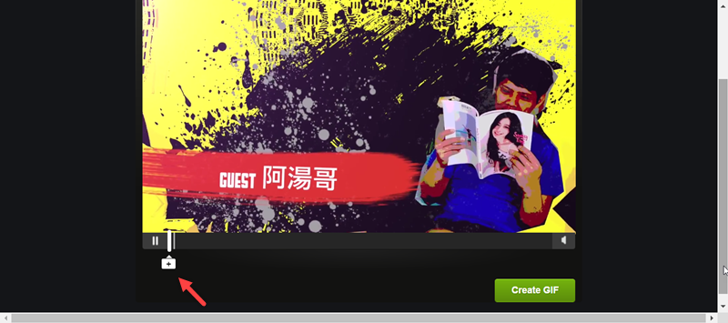 再往右拉到結束時間,同時在影片中預覽效果,決定好就點「Create GIF」。