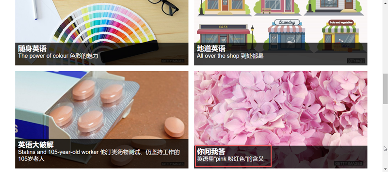 回到最上方,打開綠色區域可以找到首頁看到的分類,來看看「雙語看世界」有什麼內容。