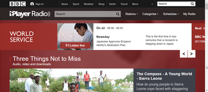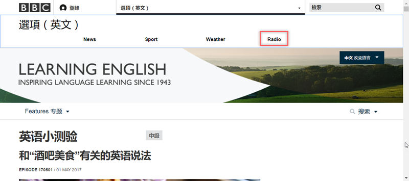 連到了 BBC 官網的 Radio 專區,程度有到就可以挑戰直接看或聽 BBC,官網這裡有不少資訊,不管是錄製好的節目或線上 Live 都很適合進階學習,可以說學英文一定要常聽新聞才能獲取更豐富的資訊。