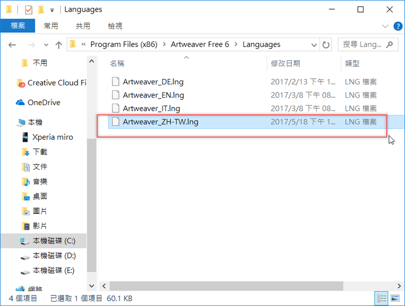 先安裝 Artweaver,然後將下載完的語言檔拖進 Artweaver Free 6 檔案區的語言資料夾。
