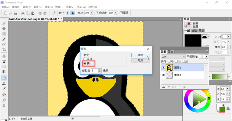 將邊界擴大 5 像素,按確定。