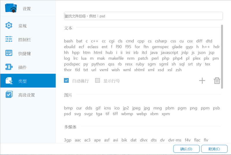 關掉重開,在「類型」這裡可以看到支援的檔案格式,文本、圖片、多媒體、壓縮包,常見、不常見的格式都有,內容相當豐富。