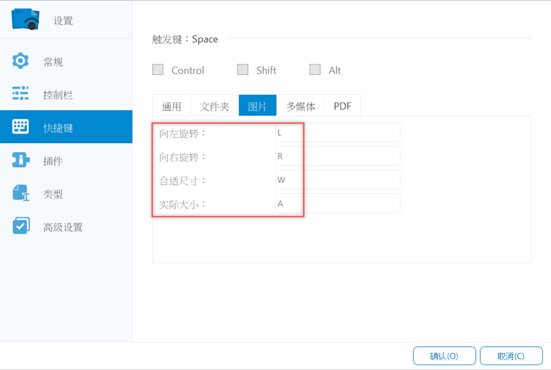 再來看一下快速鍵的部分,預設的觸發鍵就是空白鍵「Space」,也可自行調整。