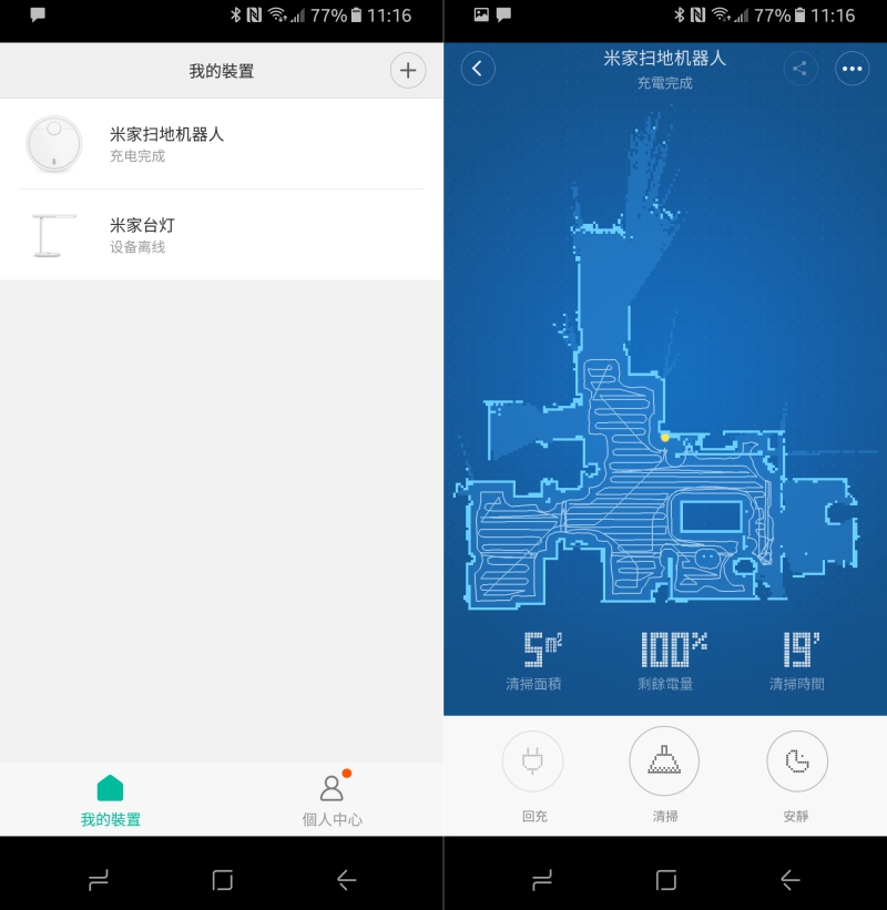 如同前面提到的,米家掃地機器人沒有遙控器,各種功能主要透過 APP 來操作(