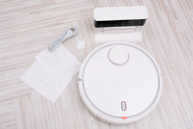 內含物包括有充電底座、掃地機器人本人、電源線、清潔小工具以及使用手冊,要注意的是,操控的部份全部透過智慧型手機的 APP 操作,沒有遙控器,所以不用找了。
