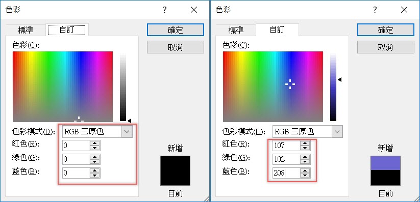 原本的 RGB 數字都是 0,填上要套用的色碼即可。