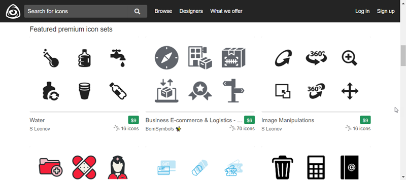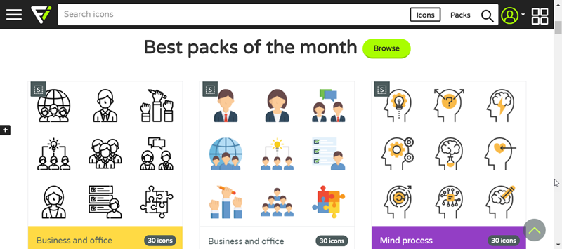 這個網站的素材也很豐富,提供 40 幾萬圖標與 7,477 組圖示包。