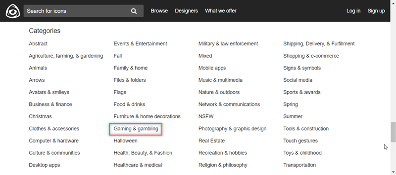 最下面是題材分類,以英文排序分得很細,一般生活、文化、教育、季節、醫療、運輸、購物、首飾等相關內容都有,像 NSFW這個類別目前還沒在其他網站看過,點進去發現是成人專用的…還是來看遊戲和賭博好了。