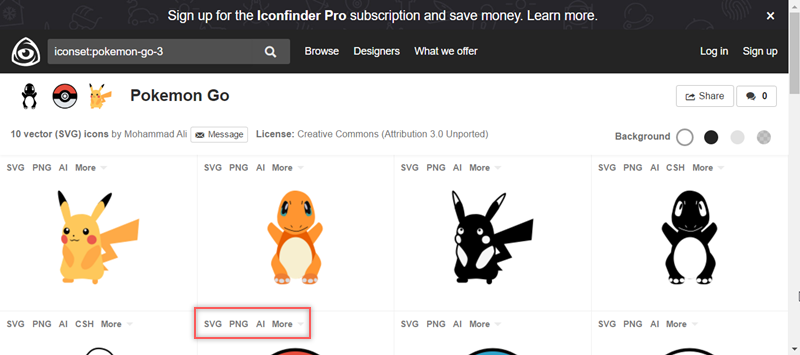 例如寶可夢類,提供 SVG、PNG、AI 檔可選擇,進來看看。