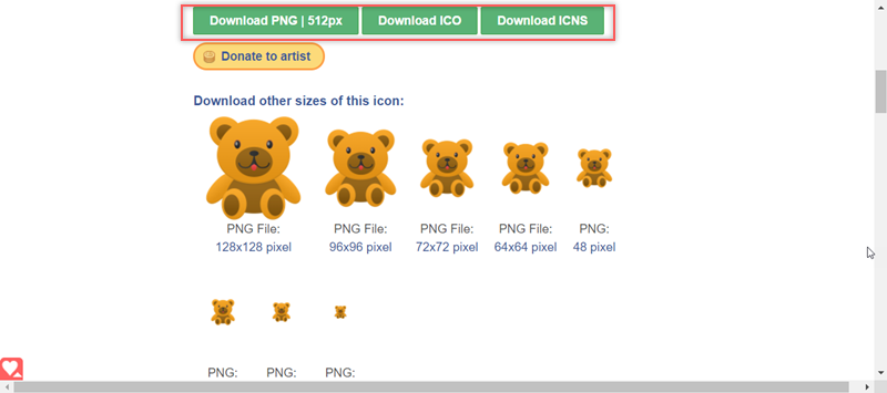 選這隻熊熊吧,共有 PNG、ICO、ICNS 三種格式,其中 PNG 格式如果不要 512 px 那麼大,可在下面選其他尺寸,然後是以右鍵另存的方式下載。