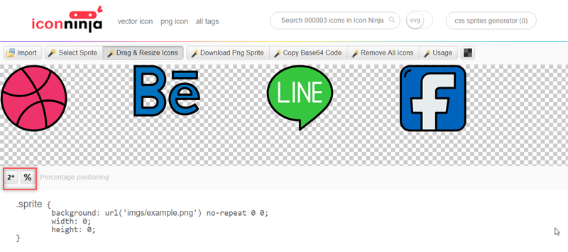另外可以從右上角進入 CSS 精靈產生器,直接進行調整、複製代碼、查看比例,非常方便。