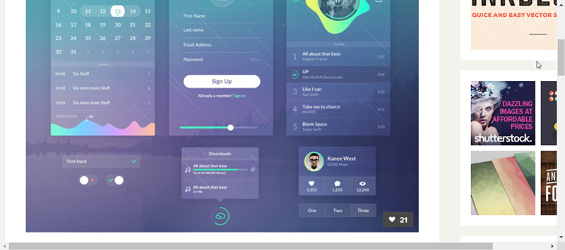 網站收集的素材真的很豐富,像這區就提供了各種不同風格的 UI 設計。