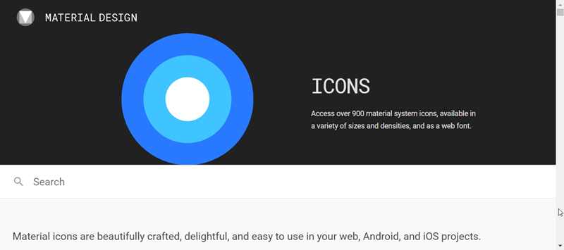 這個網站是 Google 提供的平面設計圖示,首頁一樣可直接搜尋,不過一樣不支援中文(這次介紹的網站都沒有支援中文哦)。