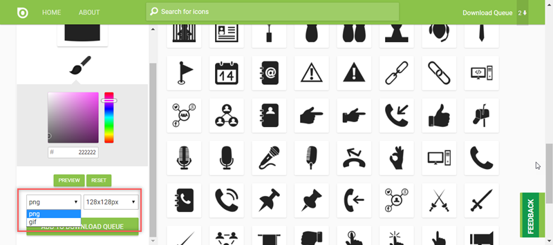 OK 的話就選擇檔案類型和尺寸點加入,類型有 GIF 和 PNG 兩種,尺寸從 16px 到 500px 都有。