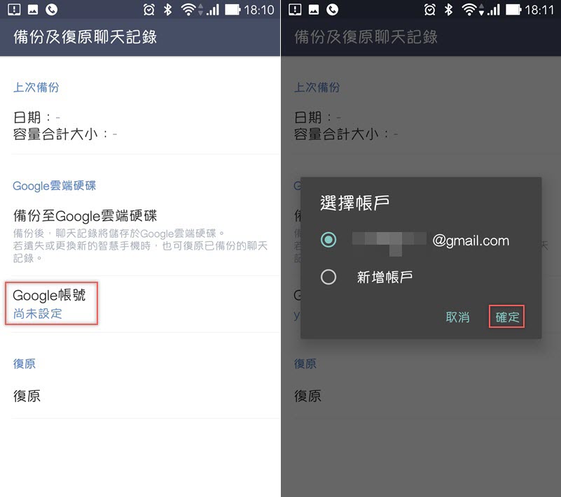 完成後會顯示日期時間和容量,這些內容如果從電腦查看雲端是看不到的,換機後直接點最下面「復原」所有聊天紀錄就全部回來了,以最後一次的備份紀錄為主。
