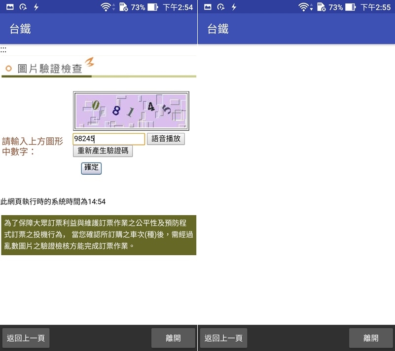 也是有輸入乘車資訊、身分證字號、驗證碼,但確認後卻一片空白,再跳出看想查訂票紀錄但沒有代碼不能查,所以到底有沒有訂到也不知道。