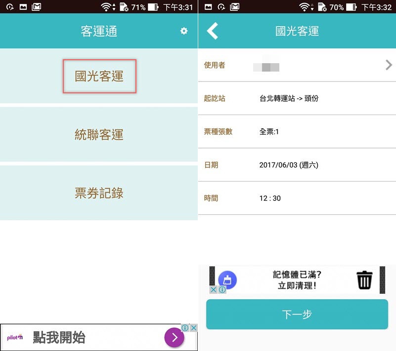 客運的部分,阿湯介紹的這兩款可實際訂票的其實評價都不高,只是給大家參考,建議還是現場買比較準。像這款只提供國光和統聯可訂,進去後要先輸入姓名、身分證字號、手機號設定使用者,才能進一步輸入乘車資料查班次。
