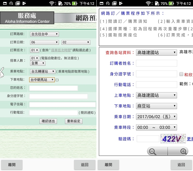 客運能訂票的相關 APP 真的很少,最後這個提供了和欣、阿羅哈、統聯、大都會可訂。