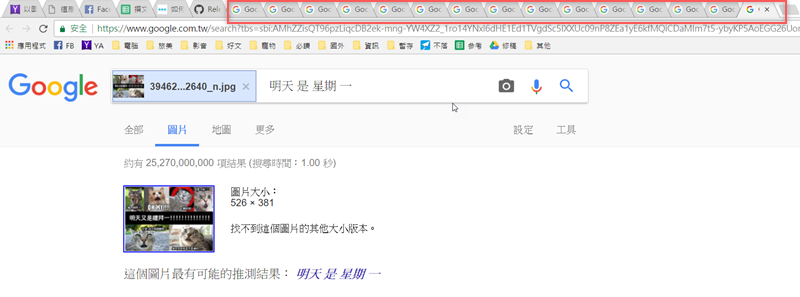 點下去後會快速讀取並開啟 Google 瀏覽器視窗,一個視窗就是一張圖片的搜尋結果,很方便。