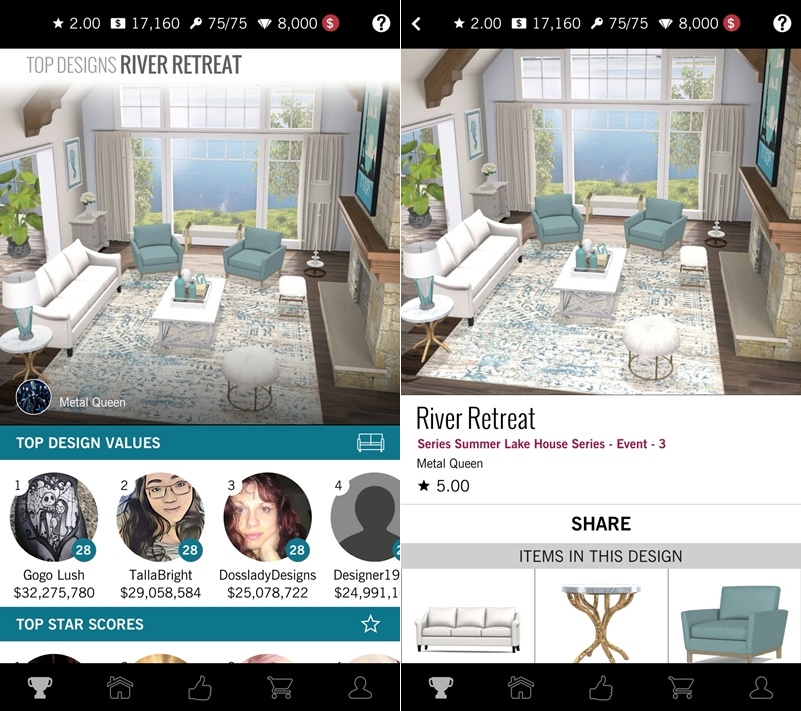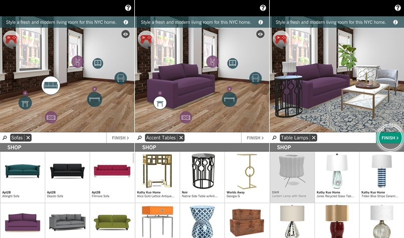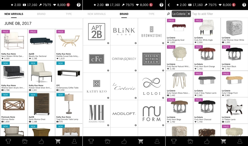 所有家具都可以在商店購買,除了依類別尋找還可以依品牌,APP 裡的家具幾乎都有實體,如果玩了喜歡就可以去買實體的家具將設計真正落實。