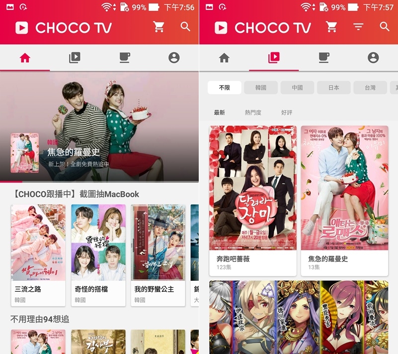 韓劇和台劇最多,更新速度不一有的很快有的就要等,點播放後還要選擇分流,或是緩存下載稍後觀看,沒那麼流暢。