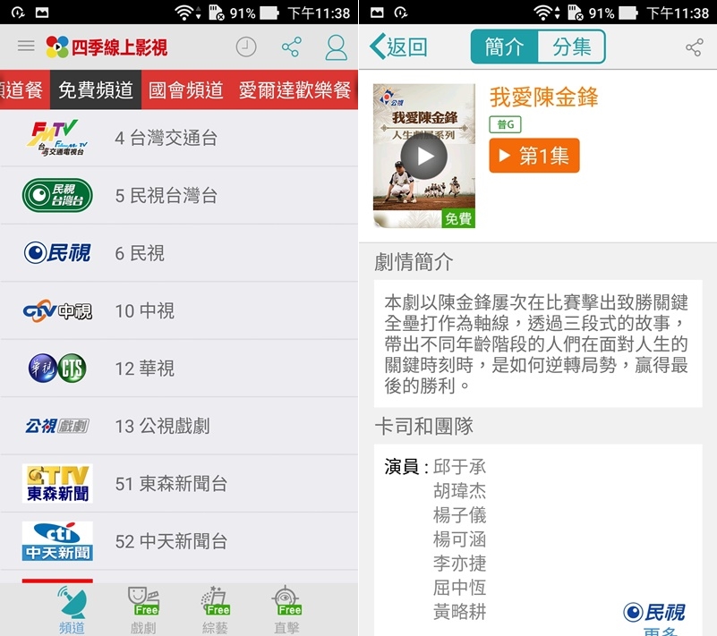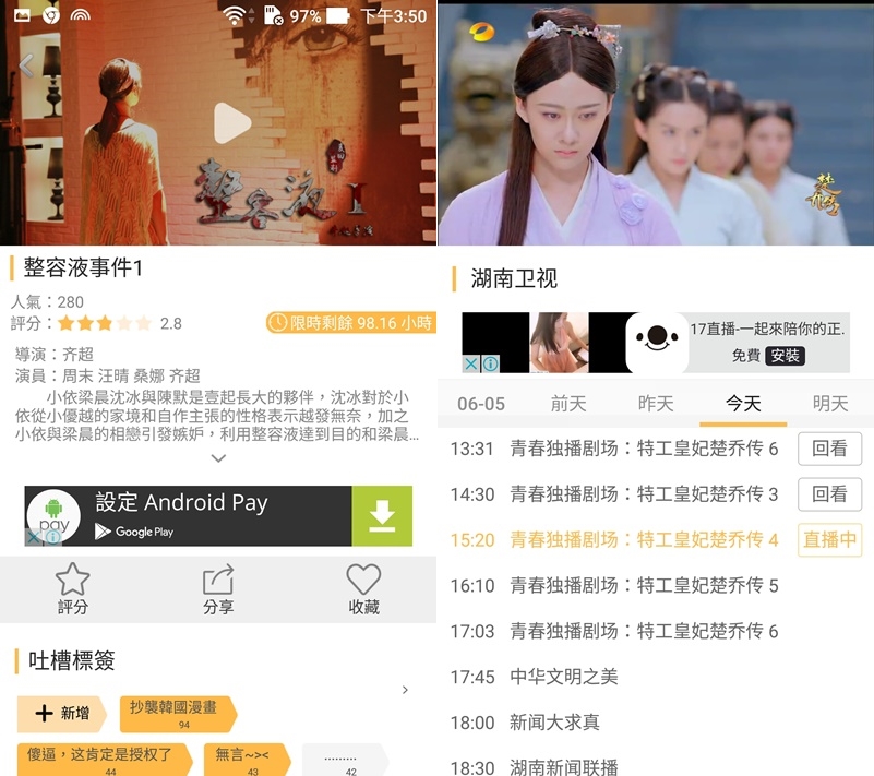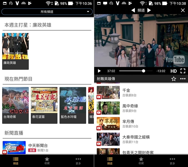 直播速度不錯都有同步到,如果專門要看這兩台的劇用這 APP 還蠻方便的又清楚。