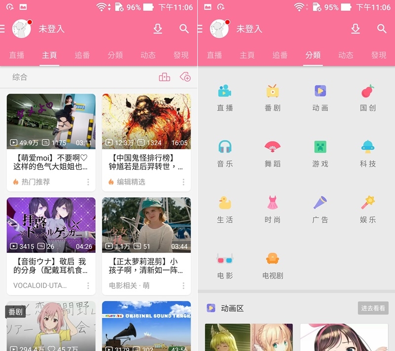 主頁和直播的內容幾乎都是動漫相關,要切換到分類點最下面的「電視劇」才能找到。