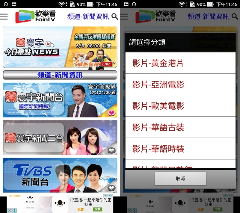 也是以電視頻道來選擇進入,看了一下應該都是台劇,畫質很清但流暢度較差。