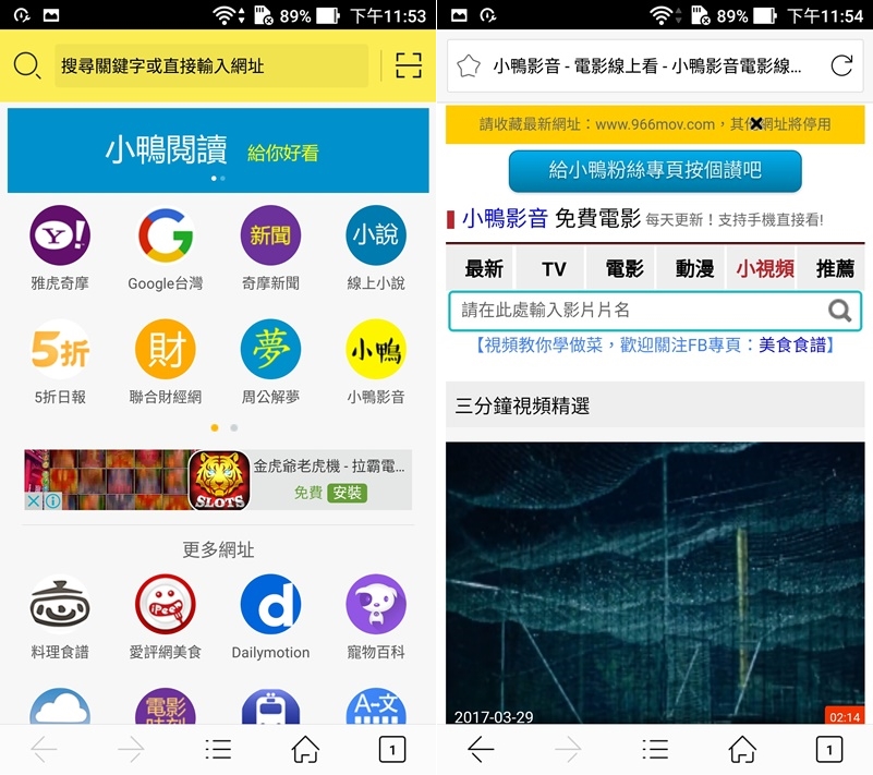 因為是瀏覽器所以首頁內容非常多元,要看劇就要從「小鴨影音」進入。