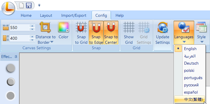進到軟體後先在上方功能列到 Config → Languages →中文(繁體)。