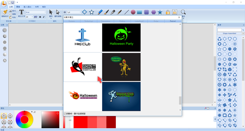然後會請你關閉,重新開啟後你可以選擇一個模板來改,或是跳過來自己設計,像阿湯沒什麼美術天分的還是選一個來改比較快,分類大致有商業、科技、原始、時尚等,阿湯選擇節慶,萬聖節好了。