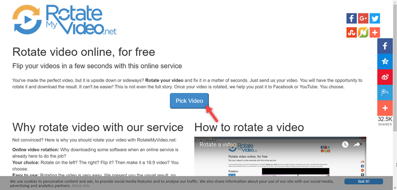 進到官網首頁點「Pick Video」選擇要處理的影片。