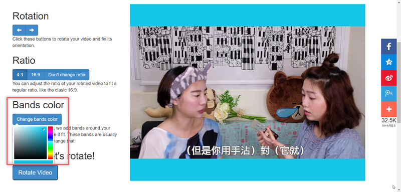 不然就改個顏色,點開來就可隨意選擇背景色彩,調整 OK 就按「Rotate Vedio」。
