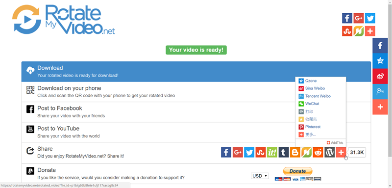 如果要傳到手機就掃描 QR code,速度也蠻快的,而且在這個網站處理過的影片只會保留幾小時,不太需要擔心安全問題。