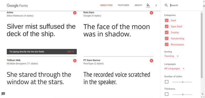 如果需要查詢字體名稱,可在首頁連結到「Google Web Fonts library」。