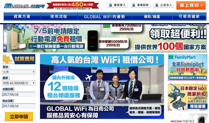 算是跟 Wi-Ho 並列的公司,網頁介面也很親民,左邊可直接輸入條件試算費用。