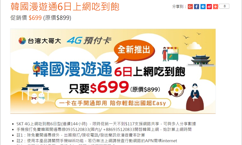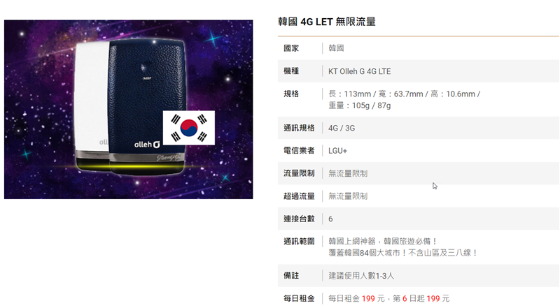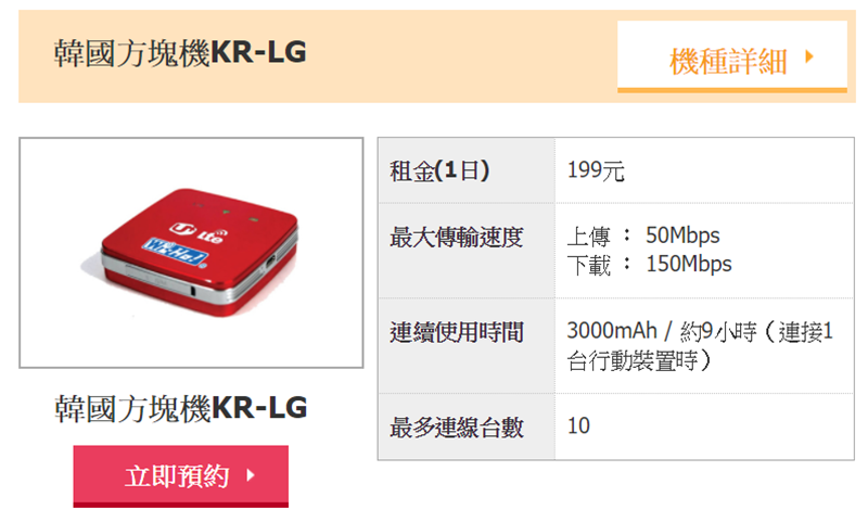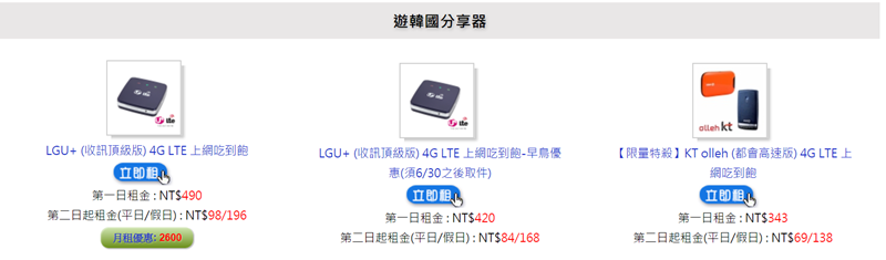 分 5 天、10 天、30 天,都是吃到飽,以韓元計算,網站介面比較不親民,但普遍評價不錯,尤其服務方面,不用自己手動設定都交給機場服務人員就好。