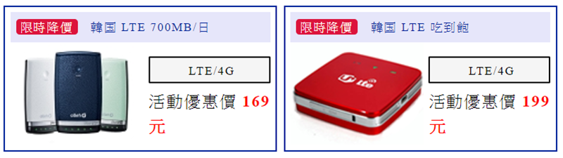 韓國也是只有一台機子,分吃到飽和一日 700MB,目前的優惠價都漫划算的。