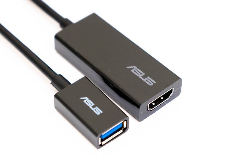 筆電為了輕薄,當然能夠外接的連接埠相對也比較少,而有很多筆電的方式就是讓你額外加購選配轉接的配件,而 ASUS 很貼心的將 USB Type-C 轉 HDMI 及 USB 的配件一併都隨機附上了,不需要再額外加購。